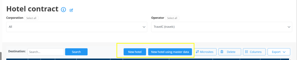 - New hotel: creará un nuevo hotel desde cero, sin tener que utilizar la ficha de ningún proveedor.