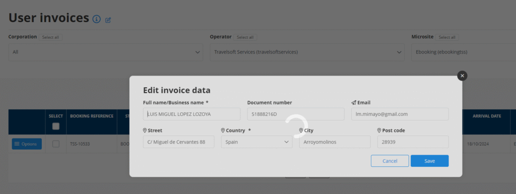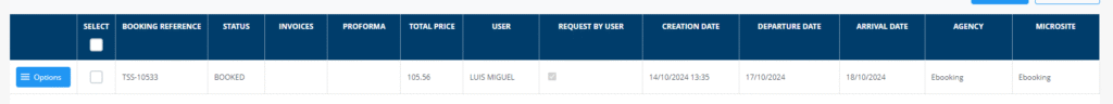 También podremos visualizar si los clientes solicitaron en el proceso de reserva la factura porque estará marcado la columna REQUEST BY USER (en el caso que estuviera marcado se le enviaría al cliente).