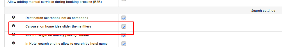 • Es posible mostrar las “ideas filter themes” en el front en forma de carousel activando la opción desde Microsite Settings por el propio Operador.
