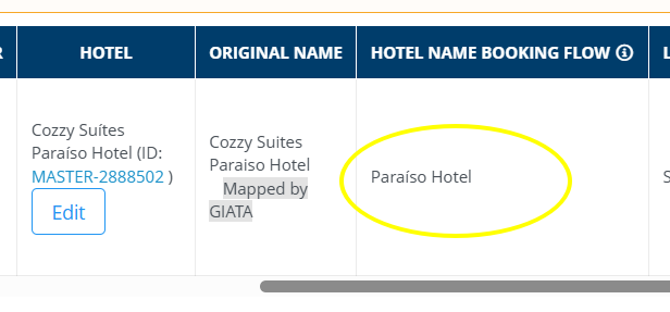 - Abrir la reserva y fijarnos en las 3 columnas.Si el nombre varía en el booking flow con respecto a la primera columna, es muy probable que haya un mal mapeo.