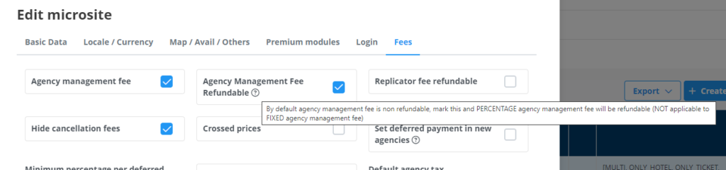 En la pestaña Fees de Microsites > Microsite