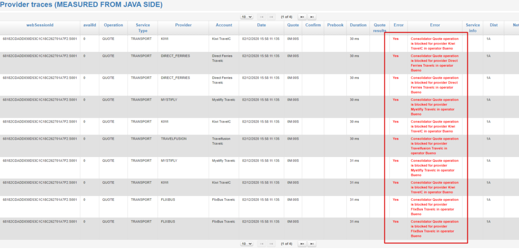 Nota: Proveedores consolidados desactivados desde Opeartor, en las trazas aparecerá con este tipo de error: