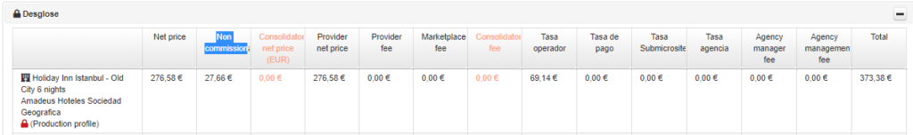 Nos pueden enviar tarifas indicando la parte NO comisionable o no. Dependiendo de esto aparecerá dicho importe en la columna del price breakdown. Esta parte NO se tendrá en cuenta para el calculo de comisiones.