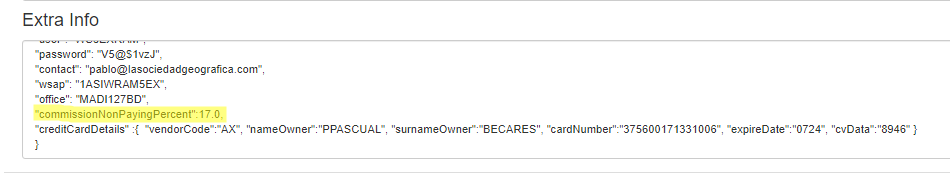 Por ejemplo: “commissionNonPayingPercent”:17.0,