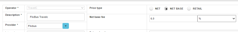 NET: La mayoría de proveedores los solemos crear con el neto y donde el Operador podrá añadir la comisión desde el Operator Fee antes de activar (siempre informarles cuando se creen las conexiones).