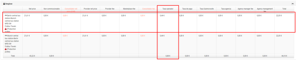 En el desglose/price breakdown esta comisión se mostraría en la columna de Tasa operador.