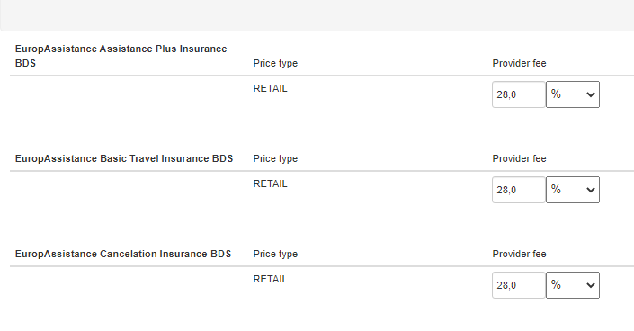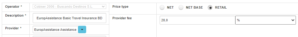 Nota: con éste tipo de price type el sistema no dará opción a configurar el Operator fee ni el Provider fee, ya que la subida de las mismas supondría salirse del precio de mercado aunque podría subir el porciento desde Retail provider fee.