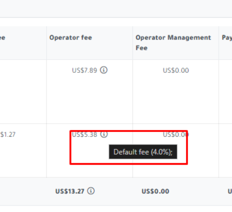 - Operator Fee: importe total del operator fee 13.27 / importe total de la reserva 529.12 = 0.025 = 2,5%