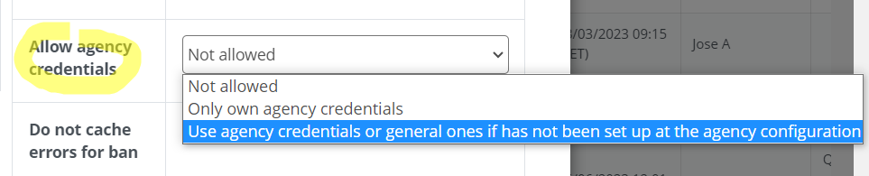 Allow agency credentials: ahora en multiclaves se puede elegir tirar de claves de agencia, no tirar de nada o bien tirar de las claves genéricas del operador.