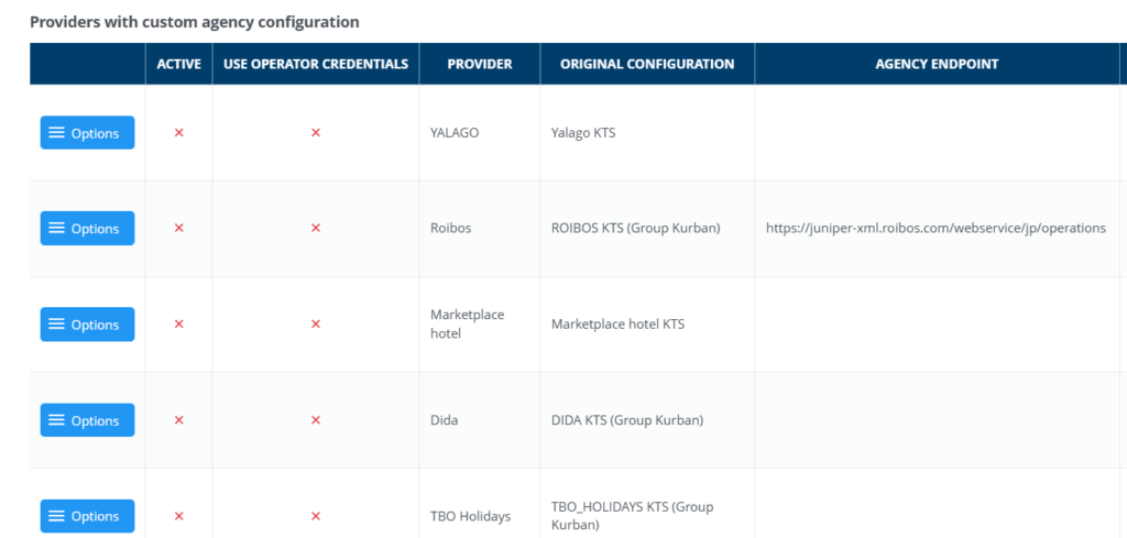 Hay que tener en cuenta: si el operador pide una nueva conexión y ésta no se configura con esta configuración Use agency credentials or general ones if has not been set up at the agency configuration, las agencias que tengan limitación de proveedores, éstas podrán ver esas conexiones porque no se habrán deshabilitado en Providers with custom agency configuration.