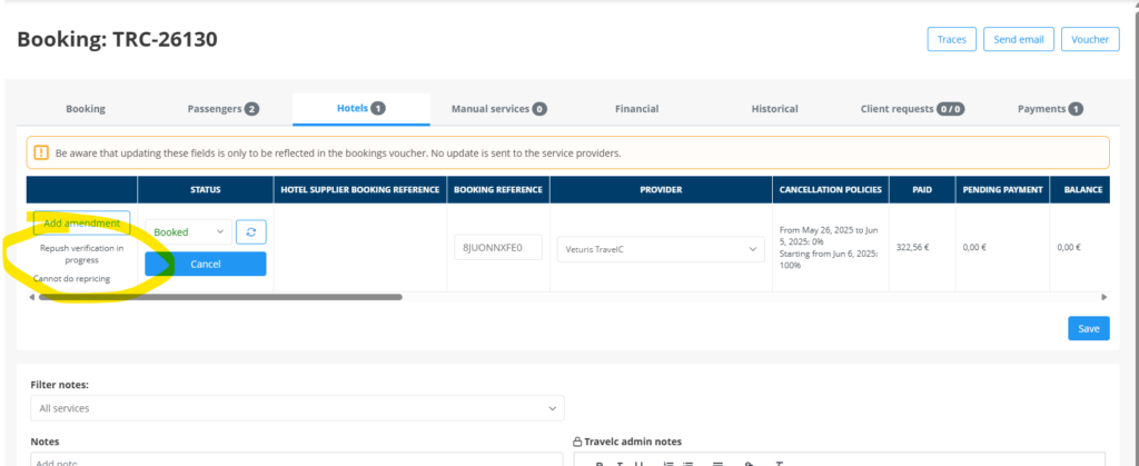 A tener en cuenta: se les ha ocultado el botón de repushti a los perfiles inferiores al OPERATOR, con motivo de que tiene costo se les restringe para que solo el OPERATOR pueda hacerlo, si se quejan operadores, reportar en el trello para que creen el permit correspondiente.