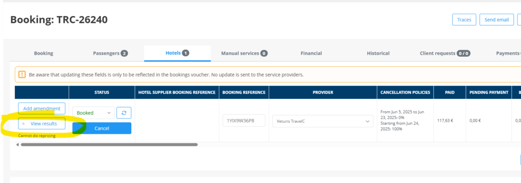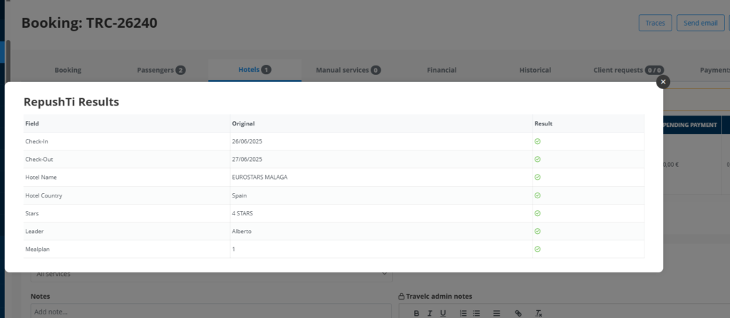 El sistema enviará todas aquellas reservas de los operadores que lo tengan contratado y se mostrará de este modo en las reservas
