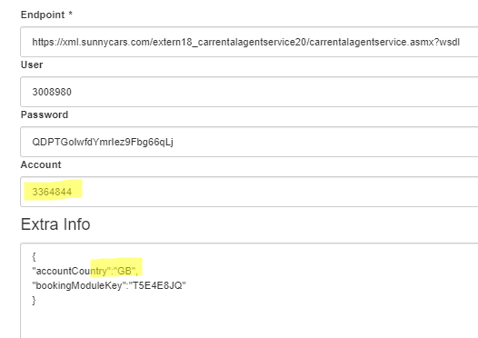 Con el proveedor Sunny Cars hay que tener en cuenta que el user es nuestro identificador “3008980” (TravelCompositor), el password el mismo para todos “QDPTGoIwfdYmrIez9Fbg66qLj”, en la extra info se debe de poner el country code del Operador y el bookingModuleKey es el mismo para todos también “T5E4E8JQ”