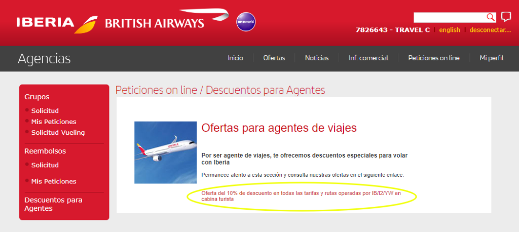 Y luego pinchar en “Oferta del 10% de descuento en todas las tarifas y rutas operadas por IB/I2/YW en cabina turista“