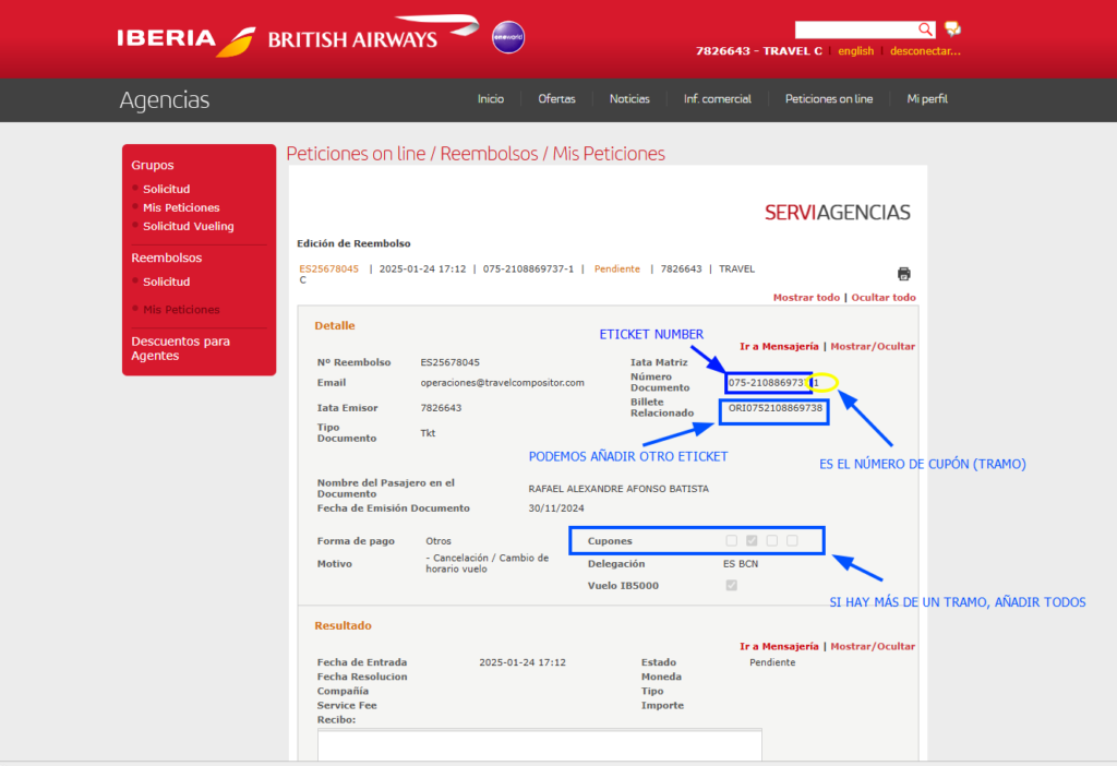 Para solicitar reembolsos en Iberia hay que rellenar varios datos obligatorio, tened en cuenta que hay que rellenar por cada pasajero.