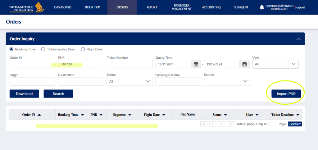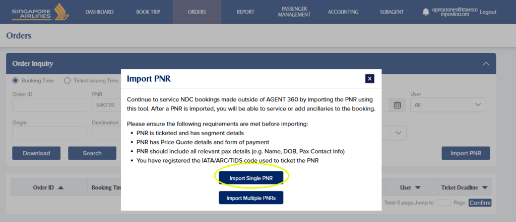 Y le daremos Import Single PNR