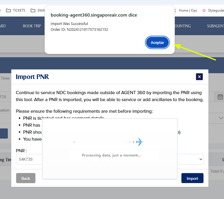 Nos pedirá de nuevo el PNR, lo añadiremos y revisaremos que el IATA sea el nuestro, e Import