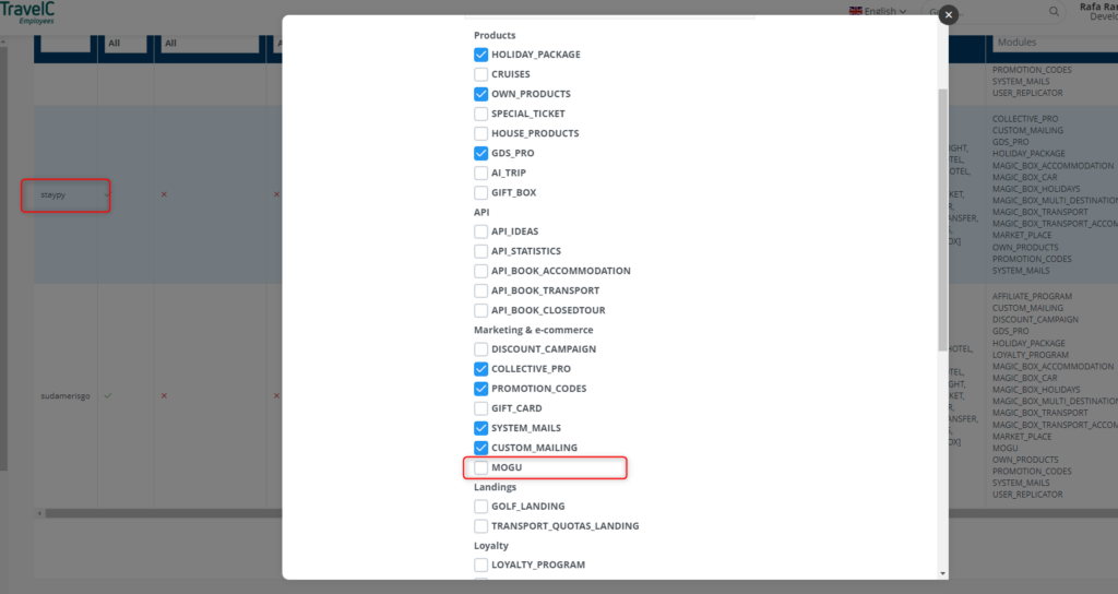 Esto también esta para los operadores como un modulo premium (MOGU) y al igual que nos pasa en reservas de employees, cada usuario tiene una agencia y al ser una variable bastante difícil para que Mogu nos identifique como tal, se ha desarrollado un botón para que nos lleve a la app desde las reservas.