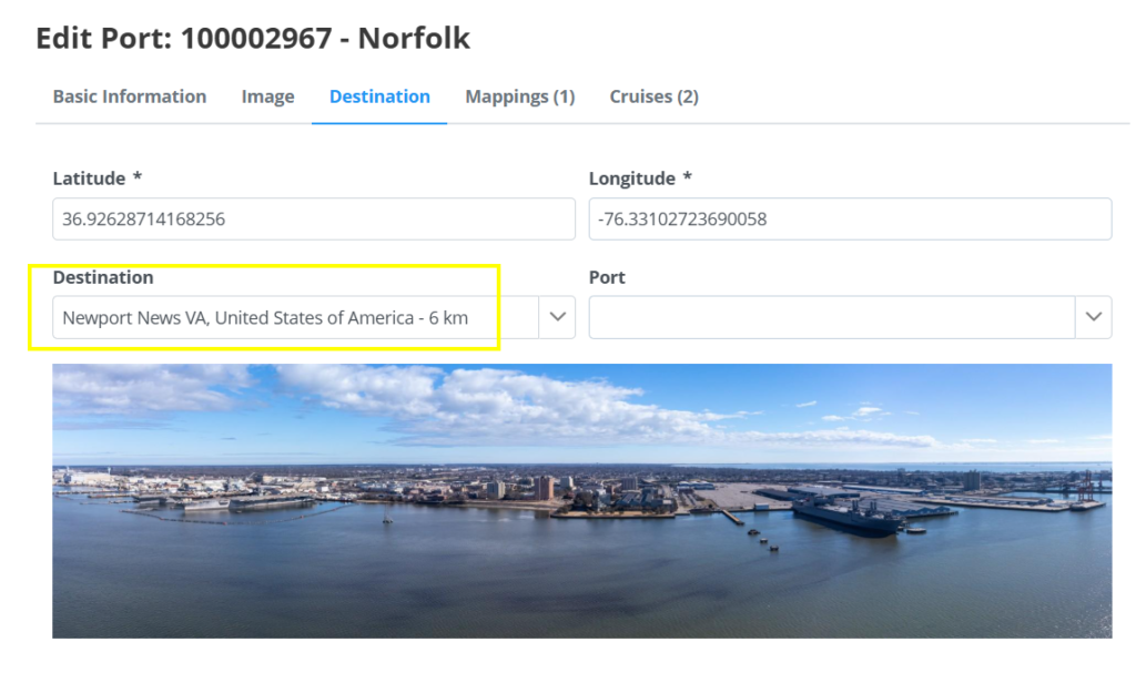 En el back office Cruises > Ports filtraremos Image (NO), Used (YES).