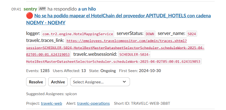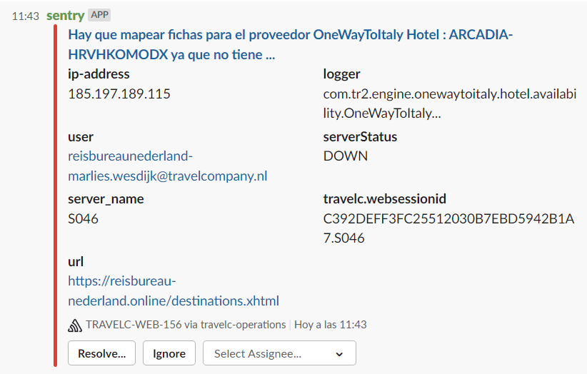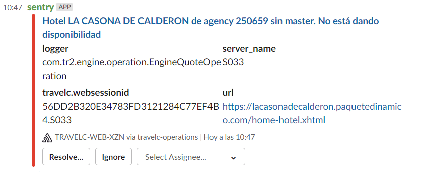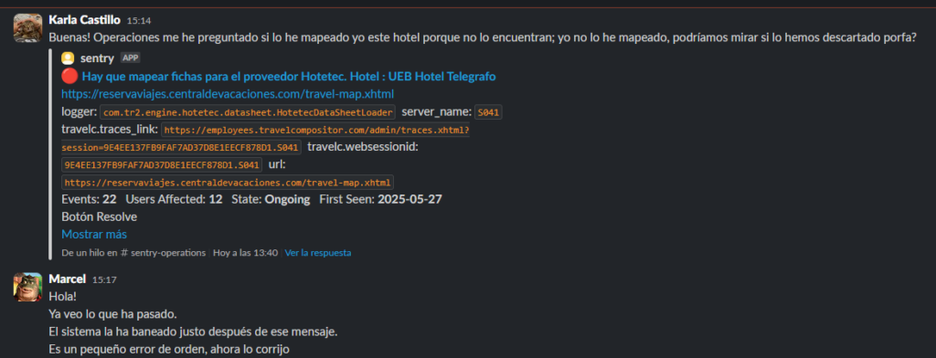 Si llegas algo parecido a esto, avisar al equipo de hoteles (Marcel) que ha saltado para que lo gestionen.