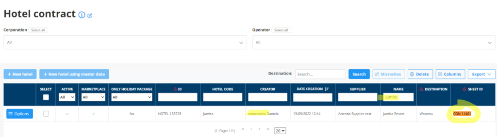 Para saber si es una ficha de Amareitalia, filtrar en Hotel contract por el nombre del hotel y podréis ver el SHEET ID de ese contract