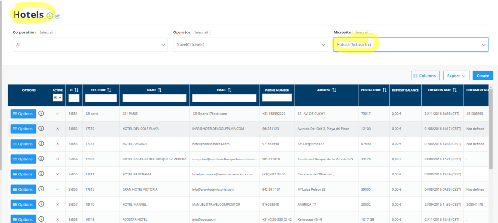 1º Iremos a Ideas & users > Agencies filtraremos por el microsite de hotusa, si os fijáis pasará a llamarse Hotels en vez de llamarse Agencies, eso es porque el sistema detecta que son hoteles independientes.
