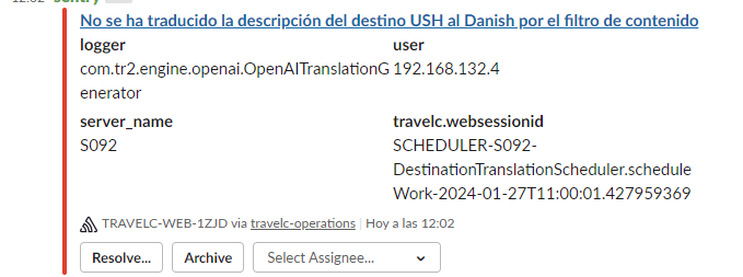 Como sabéis cada vez que se cotiza un destino en un idioma que no tiene descripción, el sistema automáticamente los traduce pero el chat gpt encuentra que alguna palabra o frase es inapropiada y de allí este error. Lo que debemos de hacer es traducir la descripción en el idioma que salta con el chat gpt.