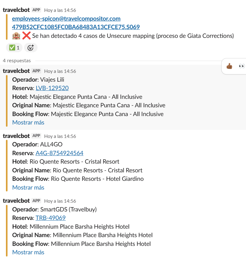 • Se han detectado 4 casos de Unsecure mapping (proceso de Giata Corrections)