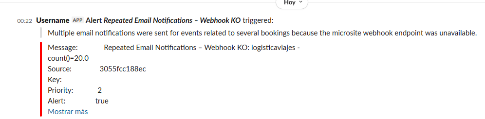 • Alert Repeated Email Notifications – Webhook KO triggered